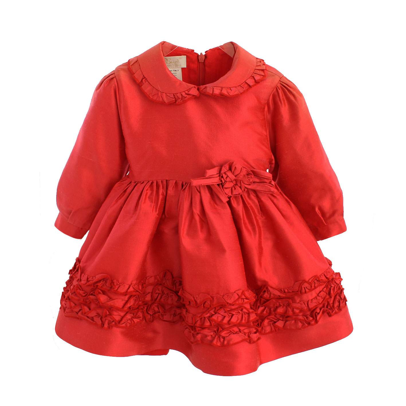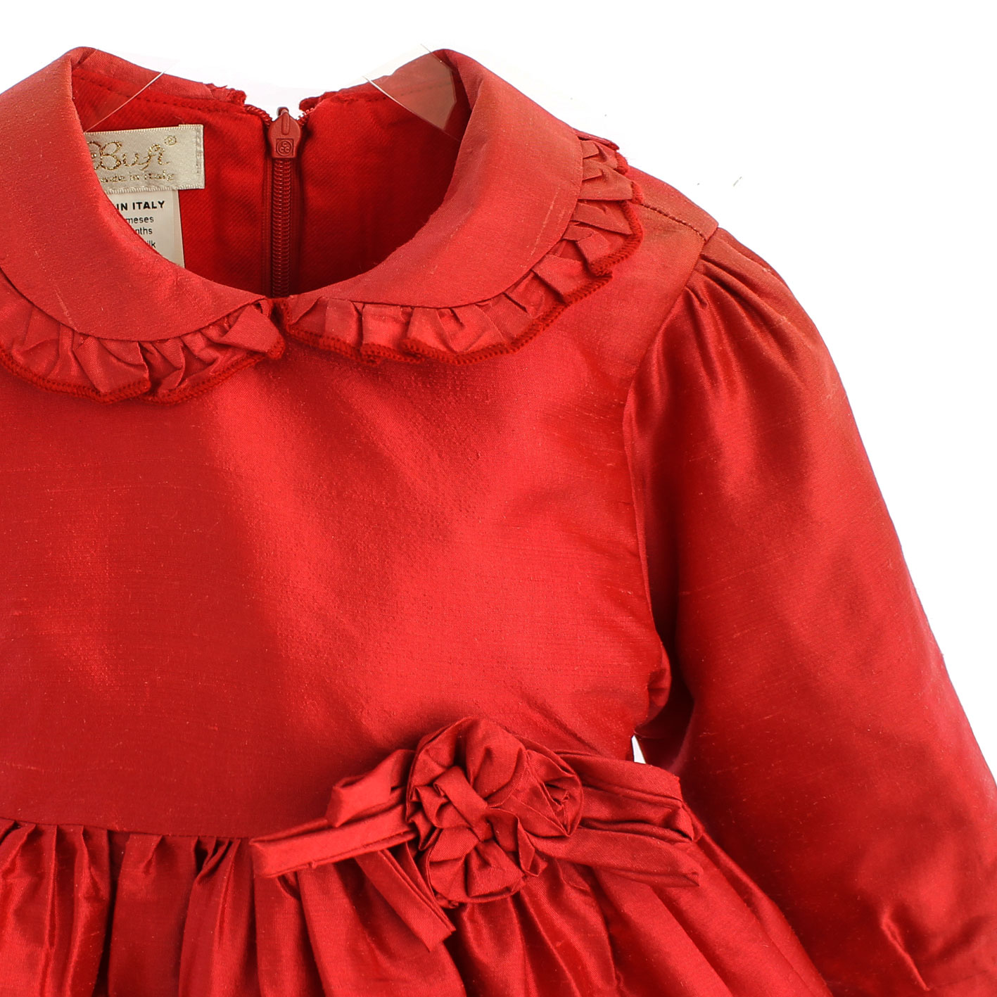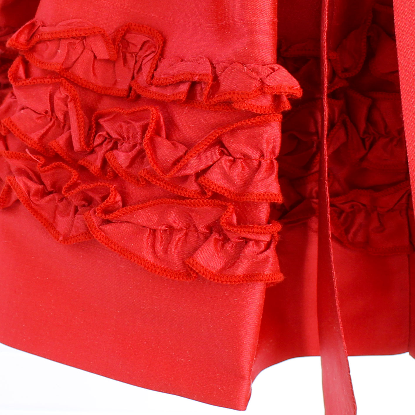 in seta rosso con rouge applicate