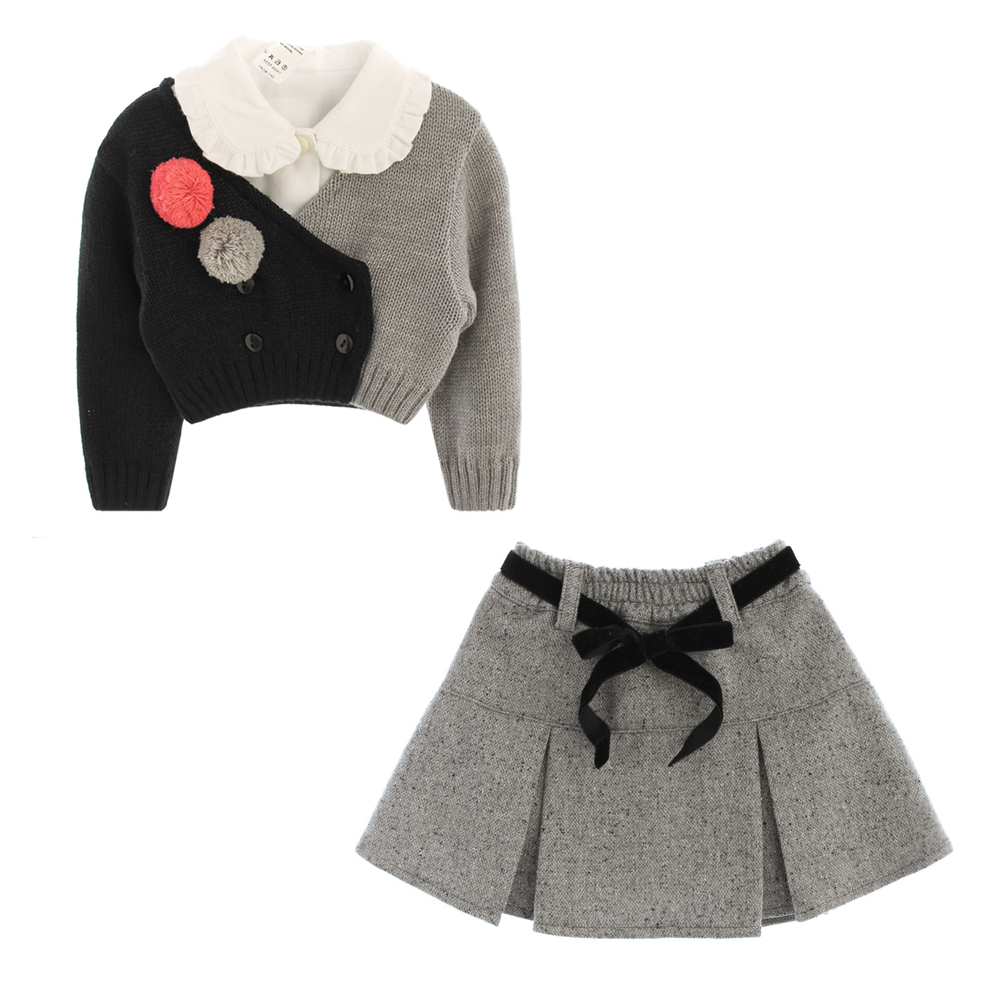 set di 3 pezzi con due pompon bicolore