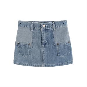 Una fantastica gonna in denim scuro slavato per bambina, realizzata in un lavaggio blu scuro. Chiusura con bottone e zip, questo modello senza tempo presenta uno stile a cinque tasche con una distintiva toppa con logo sul risvolto della gonna e impunture a contrasto e passanti.